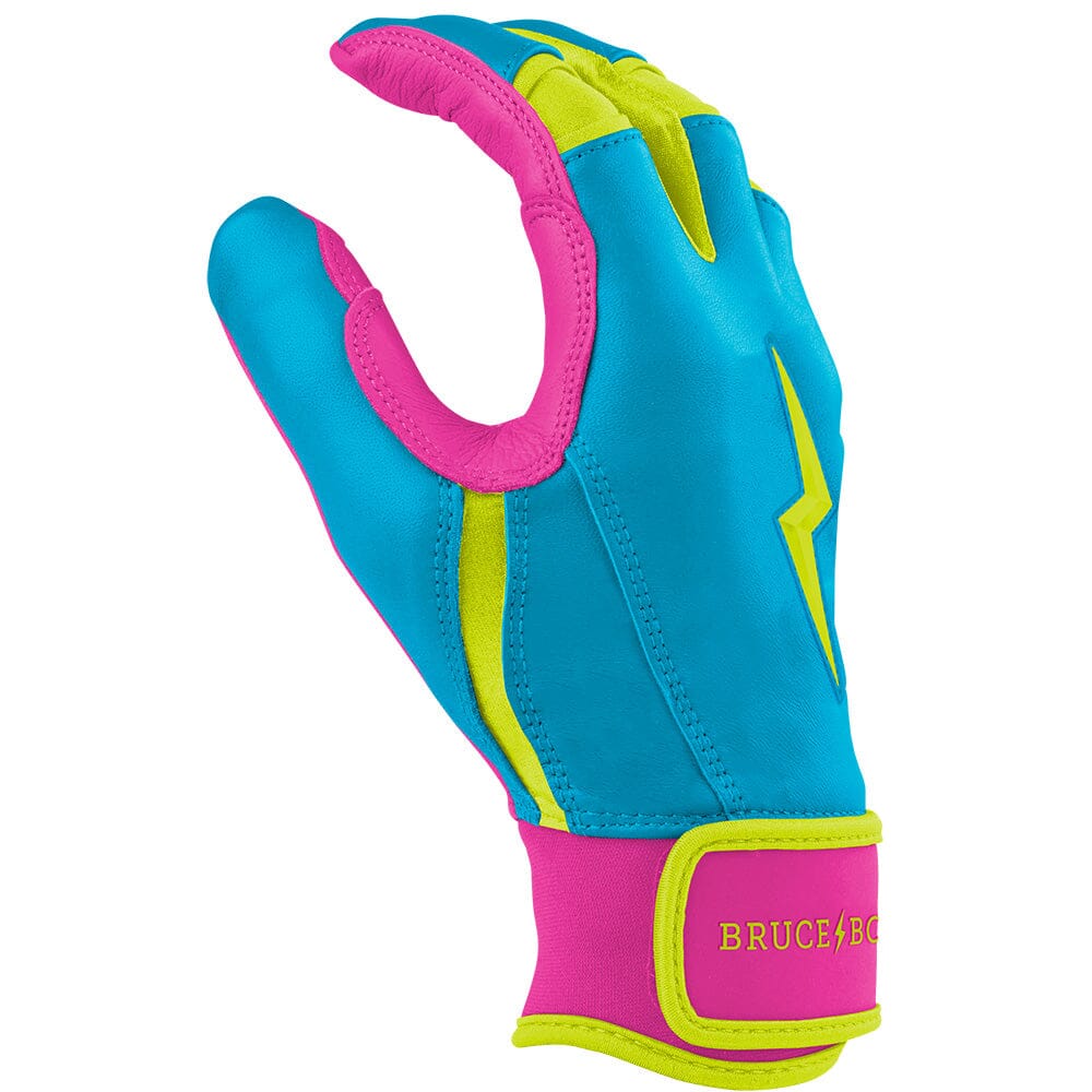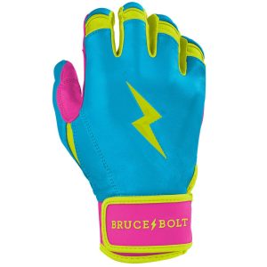 HIGHEST QUALITY. MOST DURABLE BATTING GLOVE IN BASEBALL AND SOFTBALL: Each pair of BRUCE BOLT batting gloves are handmade by skilled craftsmen using only the highest quality 0.9mm Cabretta leather and stitching techniques which makes our gloves buttery soft but more durable than any other glove on the market.
