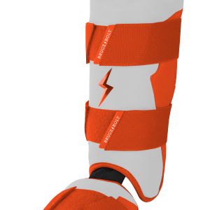 BRUCE BOLT’s PREMIUM PRO Leg & Ankle Guards feature a semi-moldable thermoplastic protective shell with a Cabretta leather outer and Sharkskin inner to keep the guard in place at the plate and while running the bases. 2 wide removable elastic strap locks the Leg guard in place providing maximum protection at the plate.