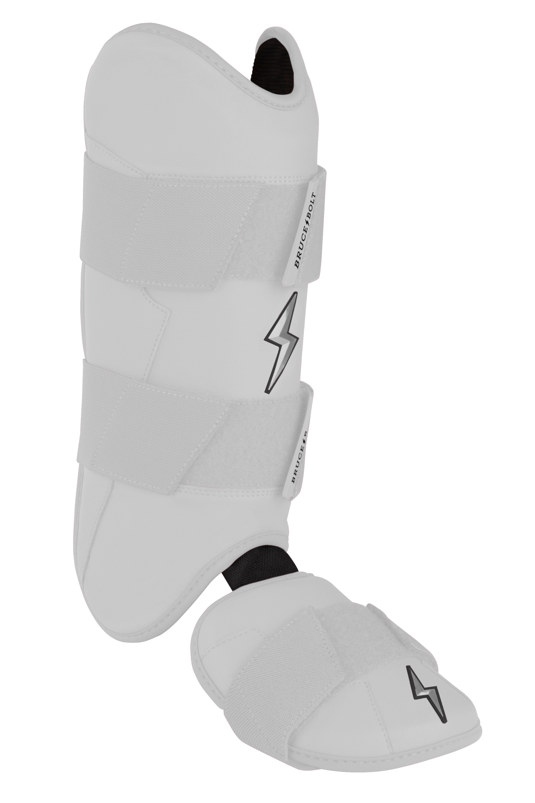 BRUCE BOLT’s PREMIUM PRO Leg & Ankle Guards feature a semi-moldable thermoplastic protective shell with a Cabretta leather outer and Sharkskin inner to keep the guard in place at the plate and while running the bases. 2 wide removable elastic strap locks the Leg guard in place providing maximum protection at the plate.