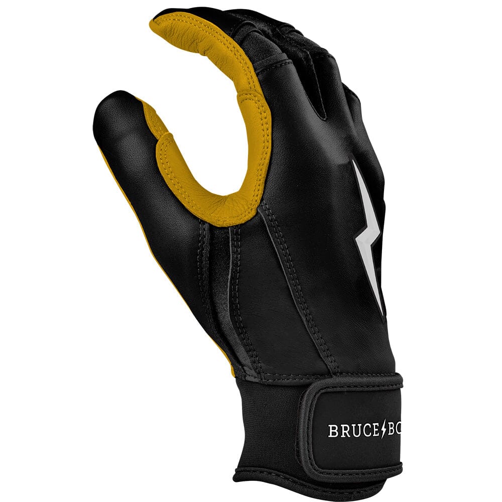 HIGHEST QUALITY. MOST DURABLE BATTING GLOVE IN BASEBALL: Each pair of BRUCE BOLT batting gloves are handmade by skilled craftsmen using only the highest quality 0.9mm Cabretta leather and stitching techniques which makes our gloves buttery soft but more durable than any other glove on the market.
