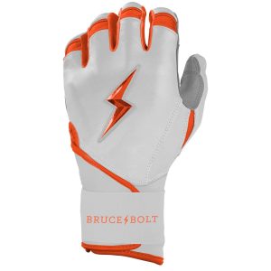 HIGHEST QUALITY. MOST DURABLE BATTING GLOVE IN BASEBALL: Each pair of BRUCE BOLT batting gloves are handmade by skilled craftsmen using only the highest quality 0.9mm Cabretta leather and stitching techniques which makes our gloves buttery soft but more durable than any other glove on the market.