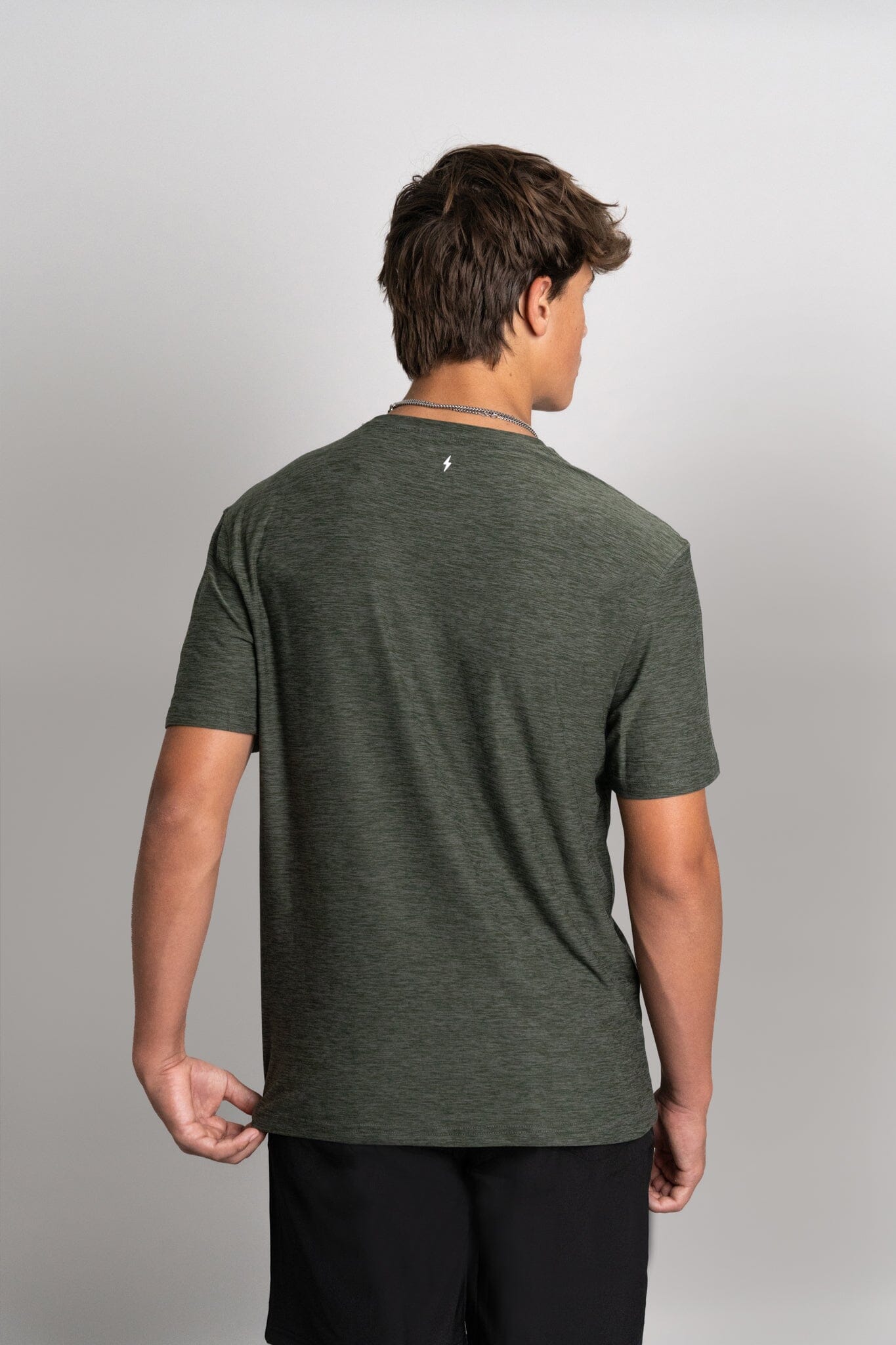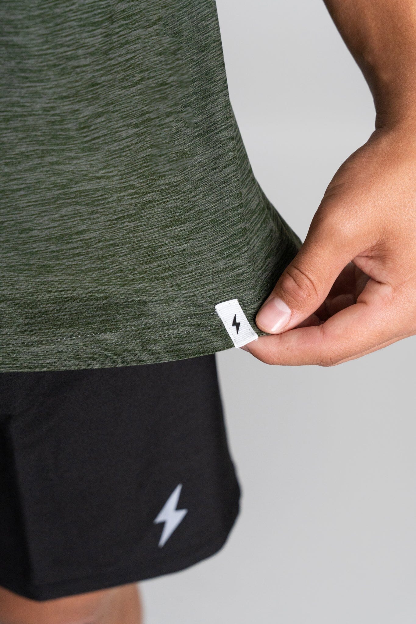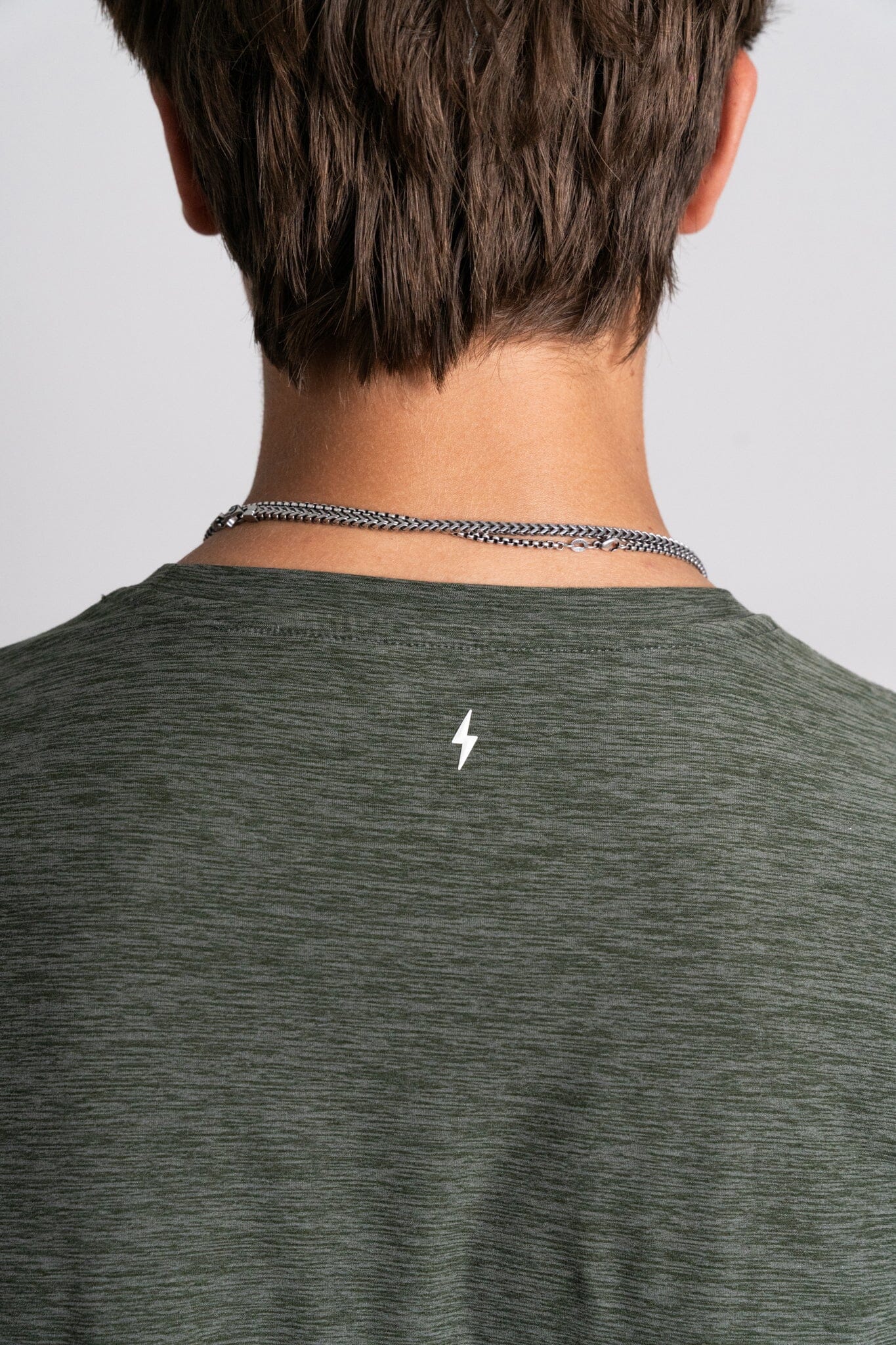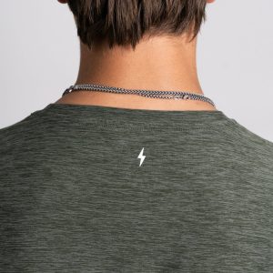 Our blank tees are branded with a stitched loop BOLT on the hemline and a small 3D silicone BOLT on the back of the neck.
