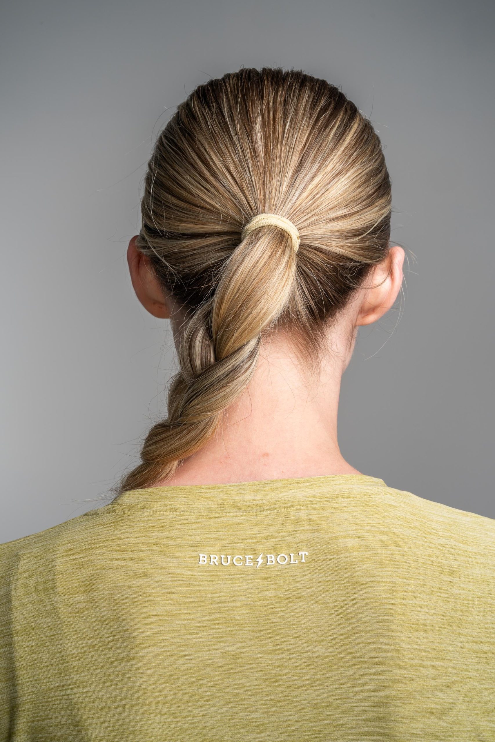 Our blank tees are branded with a stitched loop BOLT on the hemline and a small 3D silicone BRUCE BOLT wordmark on the back of the neck.